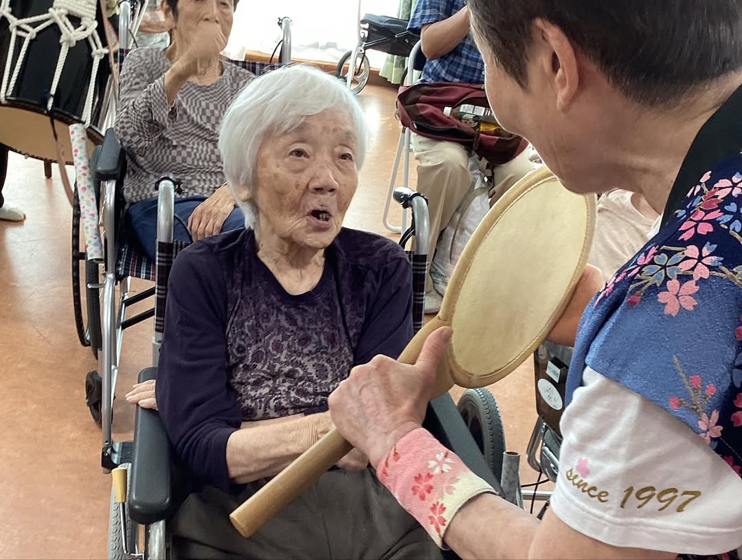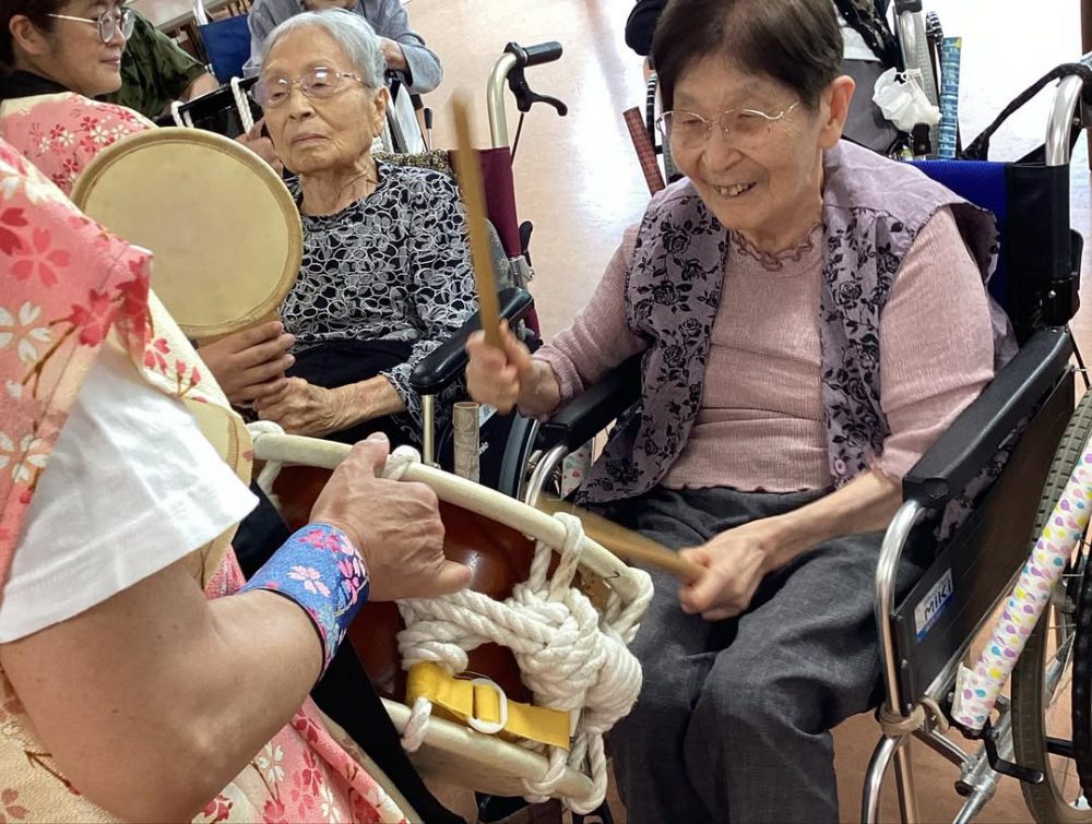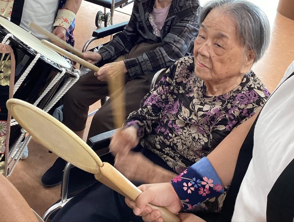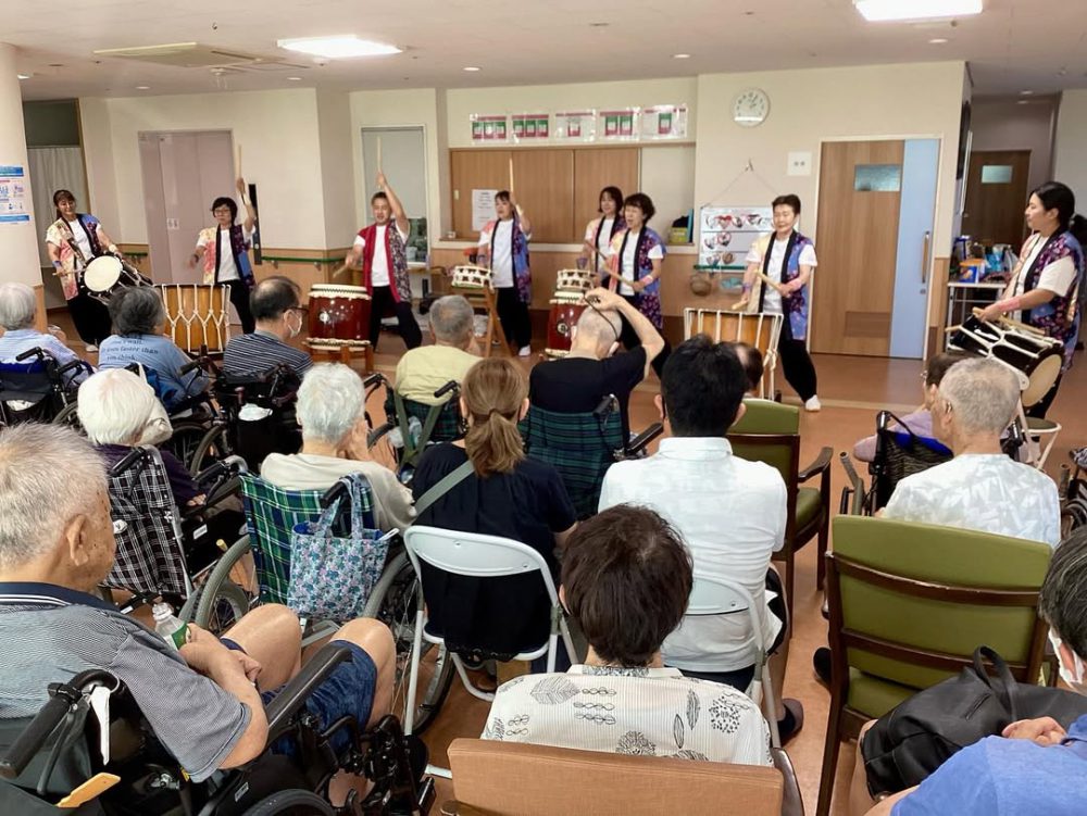 週末に太鼓祭りが開催され、利用者様はご家族と一緒に観覧し、とても喜ばれていました。 また、太鼓たたく体験もされました。みなさんに笑顔で笑ってしまいました