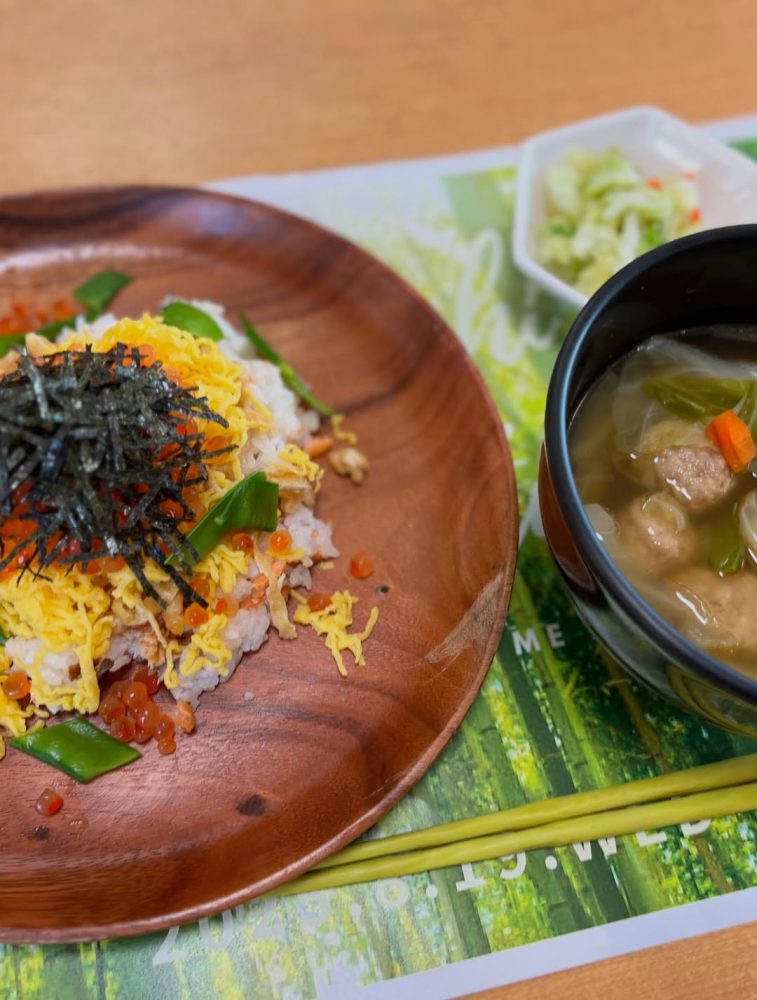 「焼き鮭親子ちらし寿司」と「つみれ汁」でした