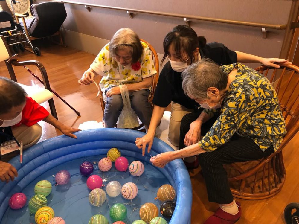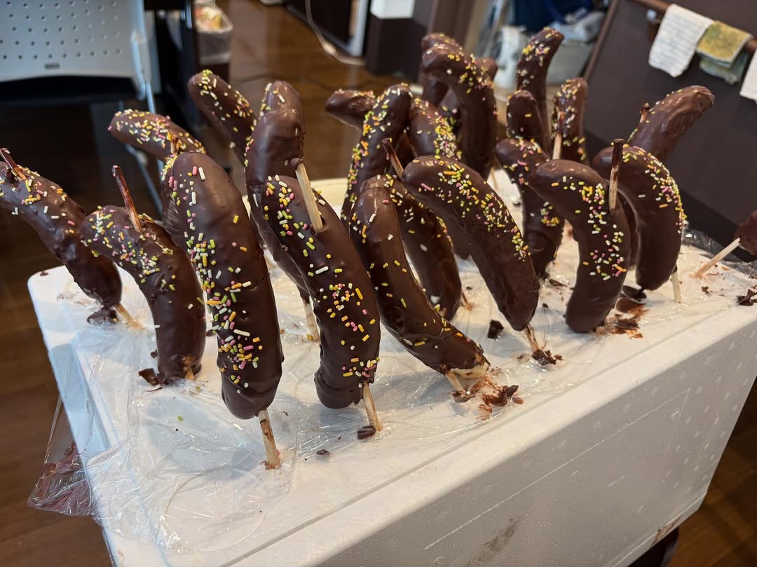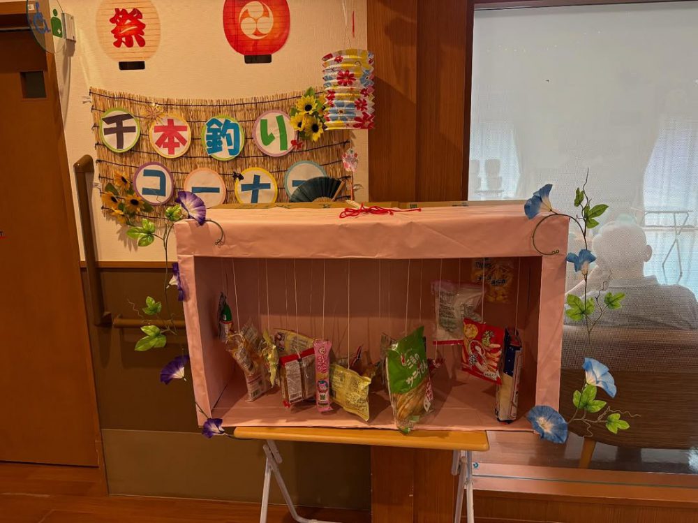 昔懐かしいゲームを楽しみ、手作りチョコバナナとかき氷でお祭り気分を味わって頂きました。