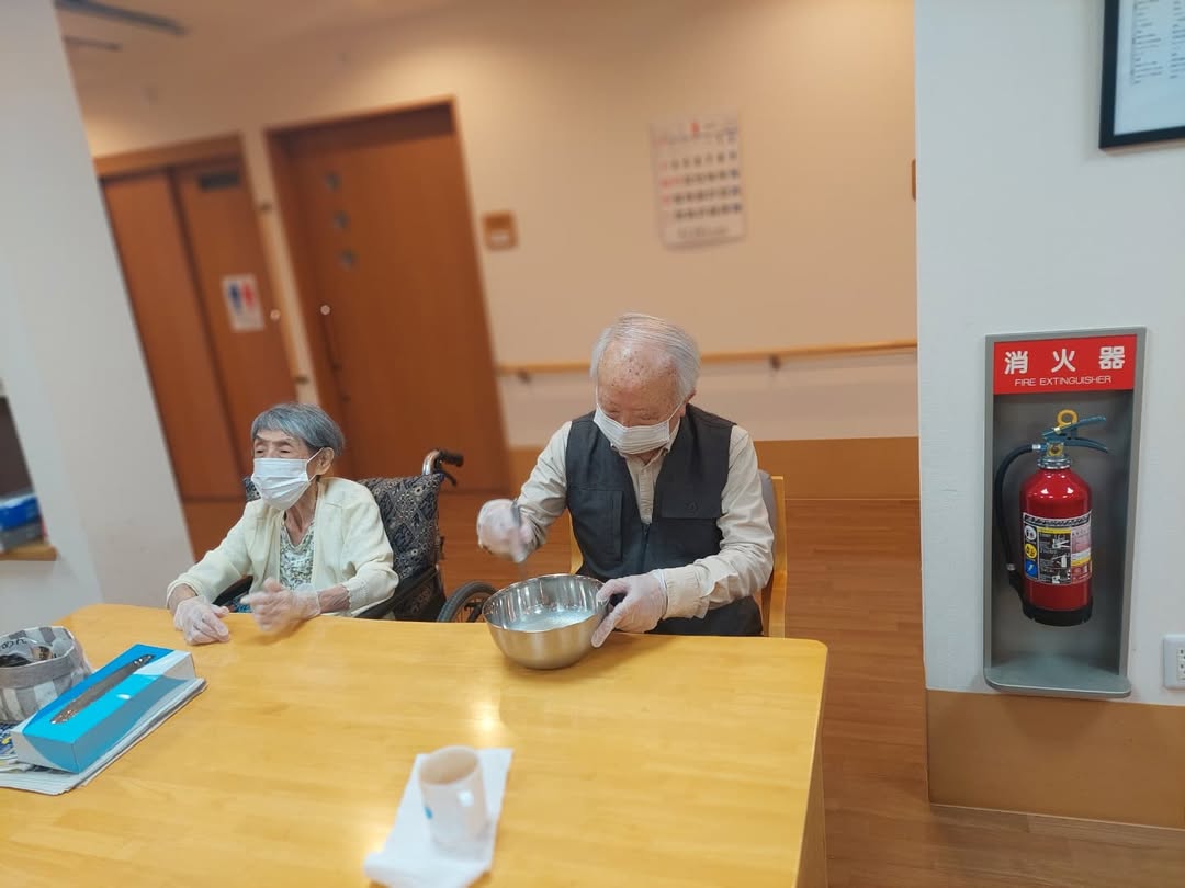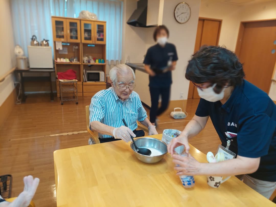 南こしがや翔裕館❤住宅型有料老人ホーム❤ 今日も皆様とおやつ作り!!毎日暑い日が続き知らず知らずのうちに脱水症になってることもあります。 今日は水分も取れ、カルシウム満点おやつを作成! 無理せず水分摂取(*^^*)