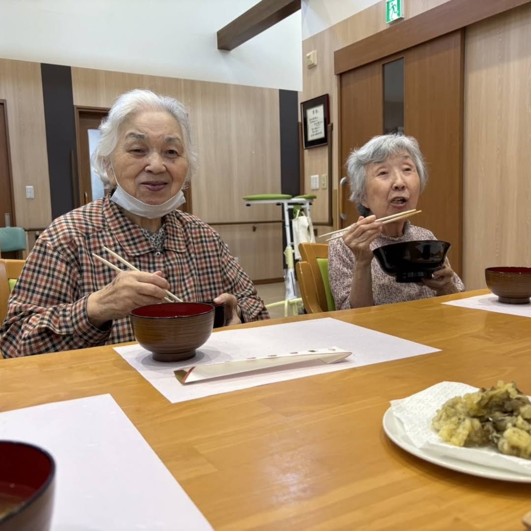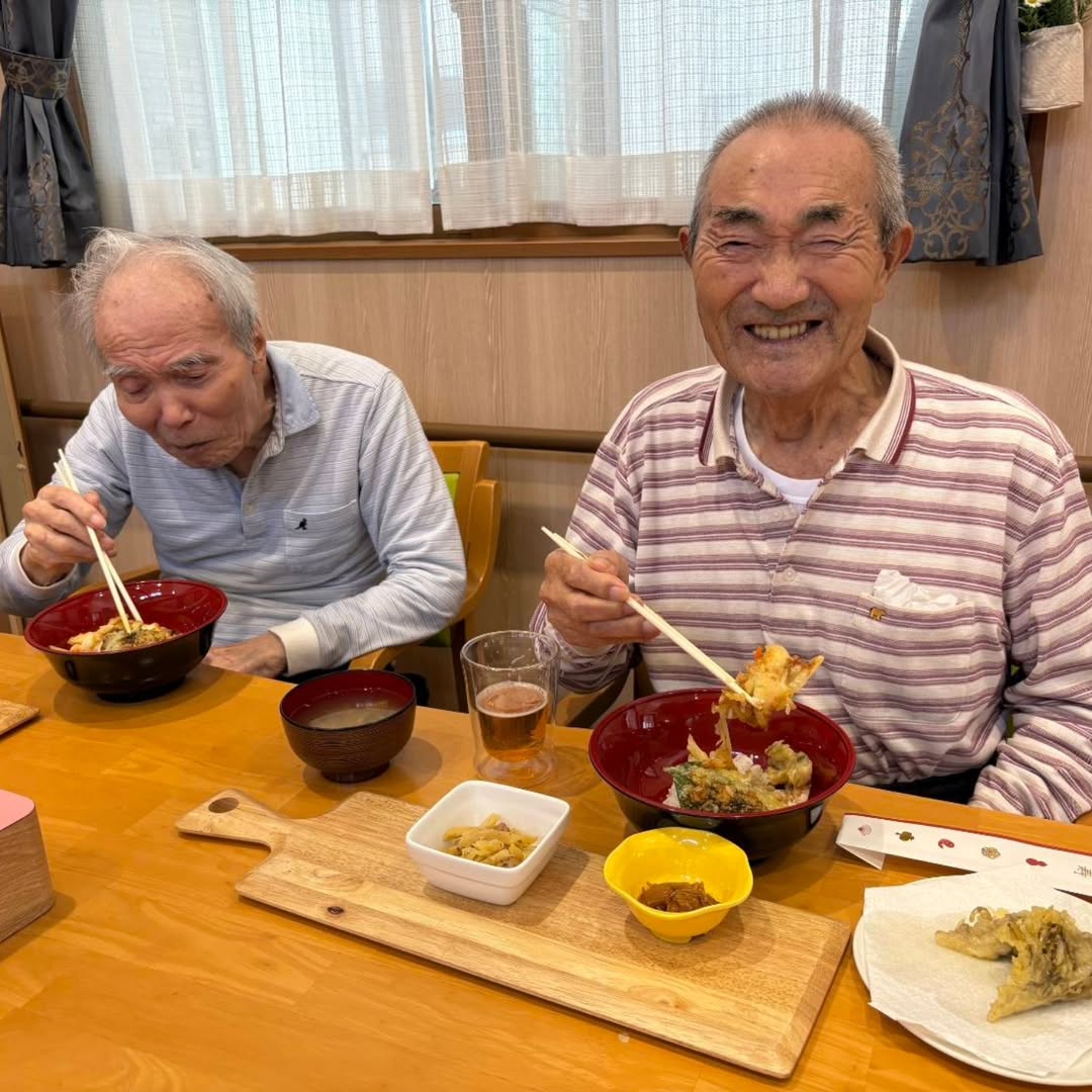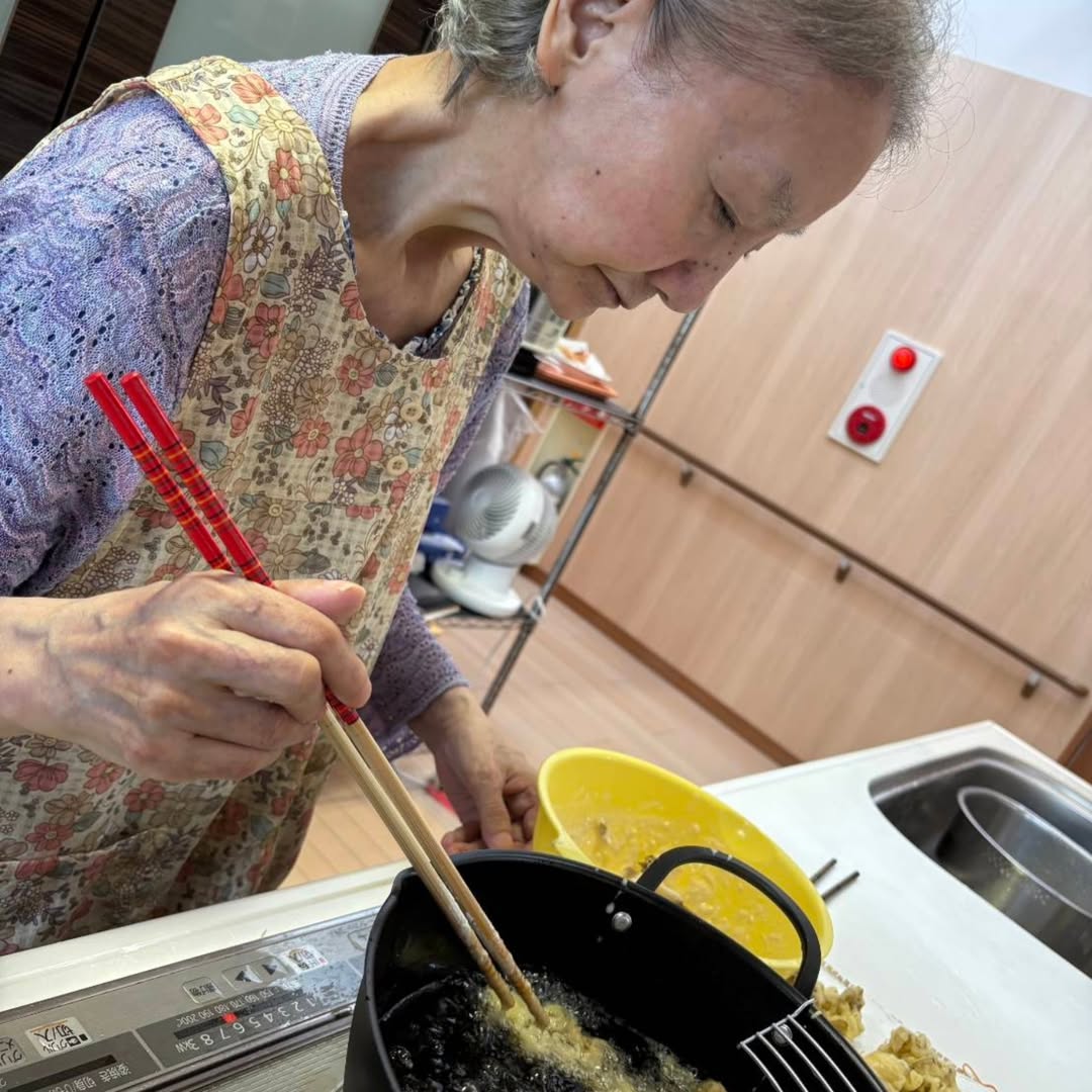 涙ぐみながら、「何十年ぶりに揚げました、ありがとう」と、他利用者様からは「頑張ったね」「凄いじゃない」とホール内に拍手と感極まる利用者様がいました。