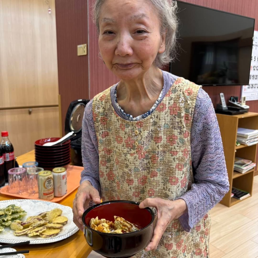 早速企画を立て昼に食事レクリエーション「天丼を作ろう」を開催しました