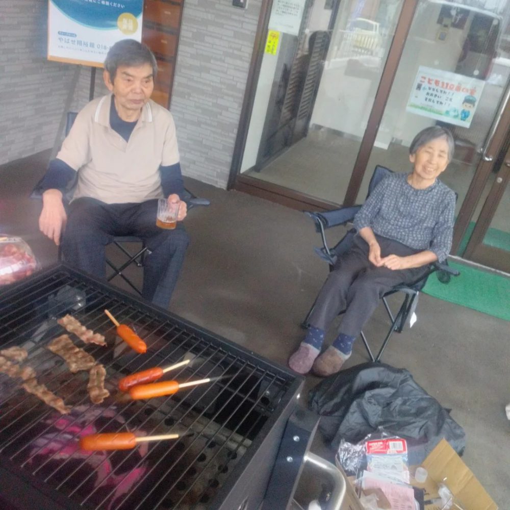今日は本番前のお試し日。入居者様も暑い中頑張っておふたり見学&焼き立て試食!昼なのでノンアル楽しんでおられます♪