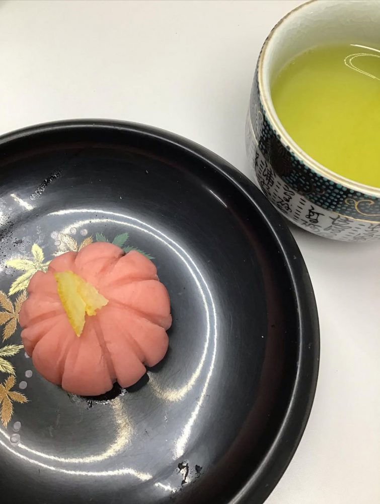 練り切りにあんこを包み、菊のように模様づけをしてみました。