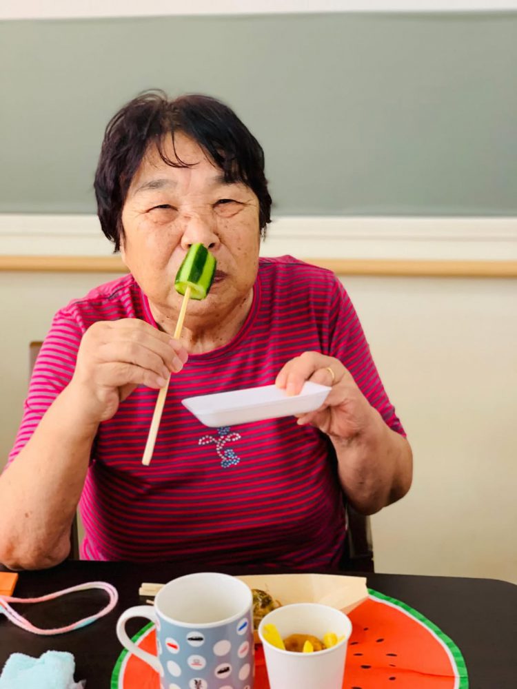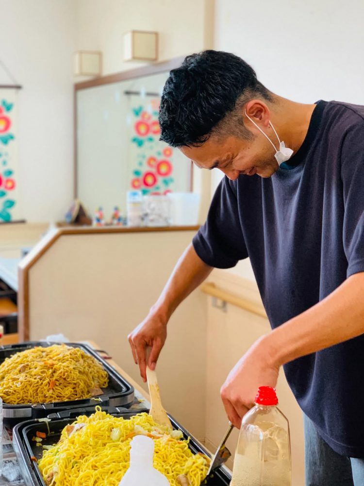 昼食は屋台メニュー 焼きそば、からあげ、たこやき、きゅうりなど… 擬似屋台を開催致しました