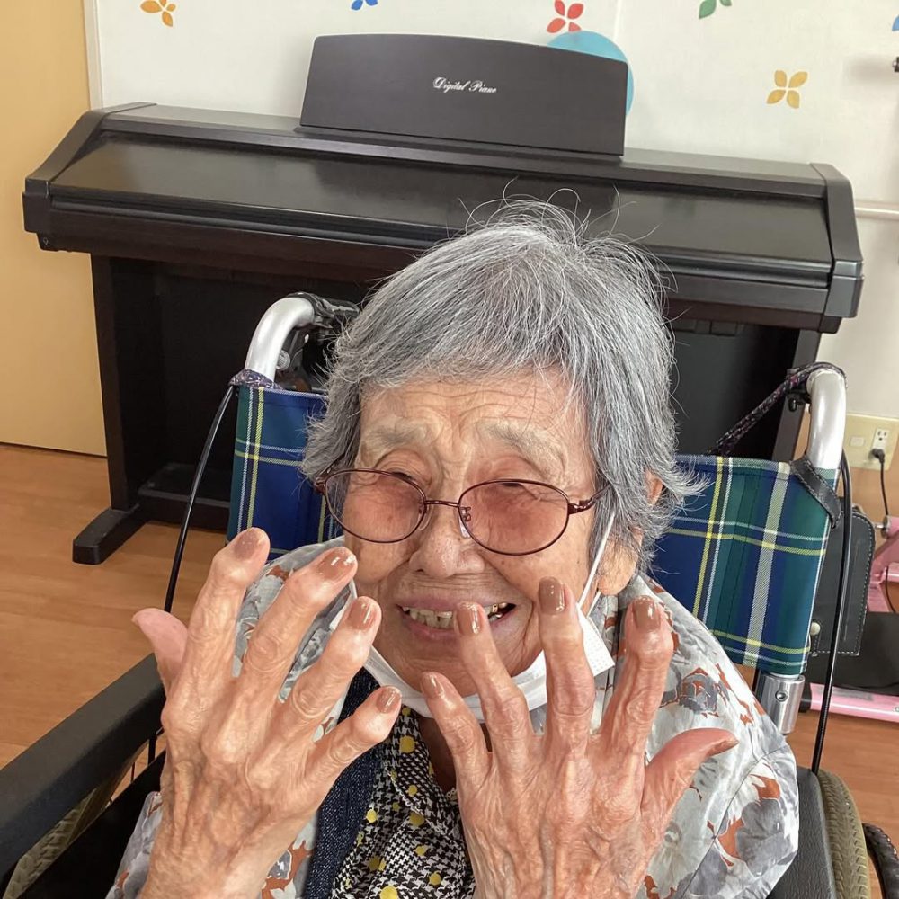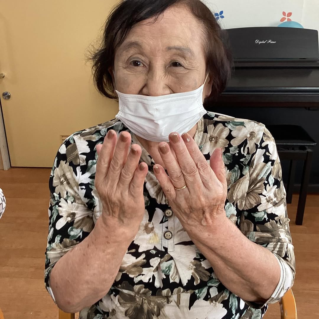 POLAの方がお見えになり、ネイル、ハンドマッサージを一緒にやって下さいました♪ マッサージが気持ちよく、ウトウトされる利用者様もいらっしゃいました