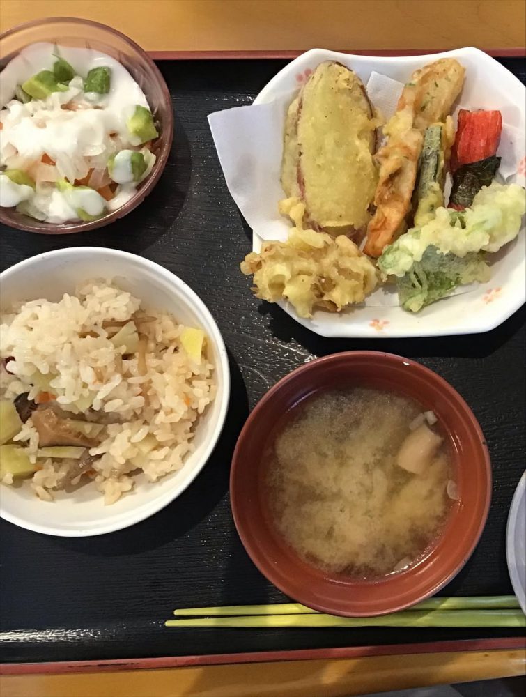 本日は秋の味覚メニューでした。 揚げたての天ぷらやさつまいもご飯など、 秋の恵みを頂きました。