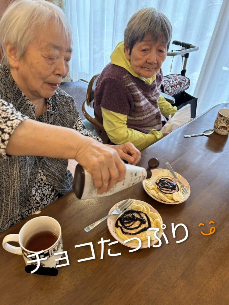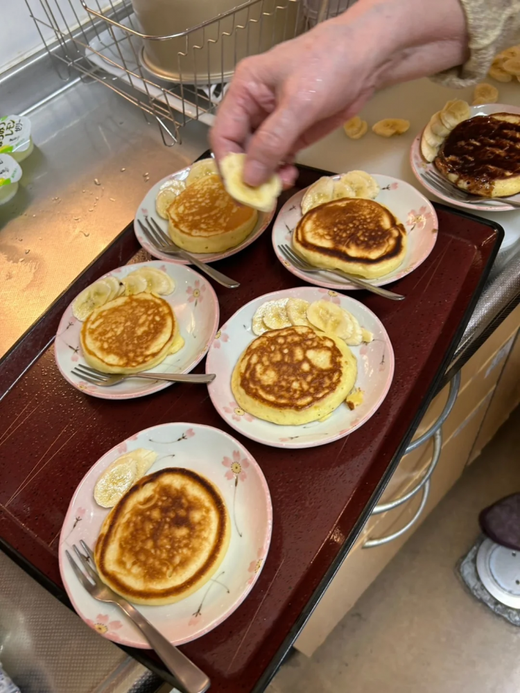 ふなばし翔裕館グループホームです! 今日のおやつは、ホットケーキ! 皆で作ってあったか~いホットケーキを頂きま〜す!