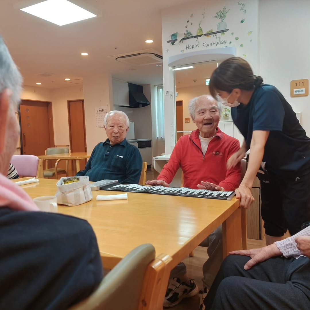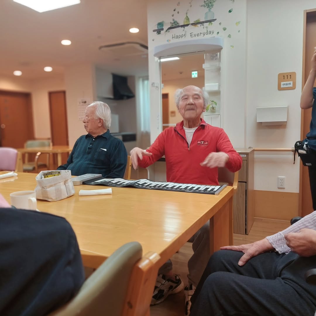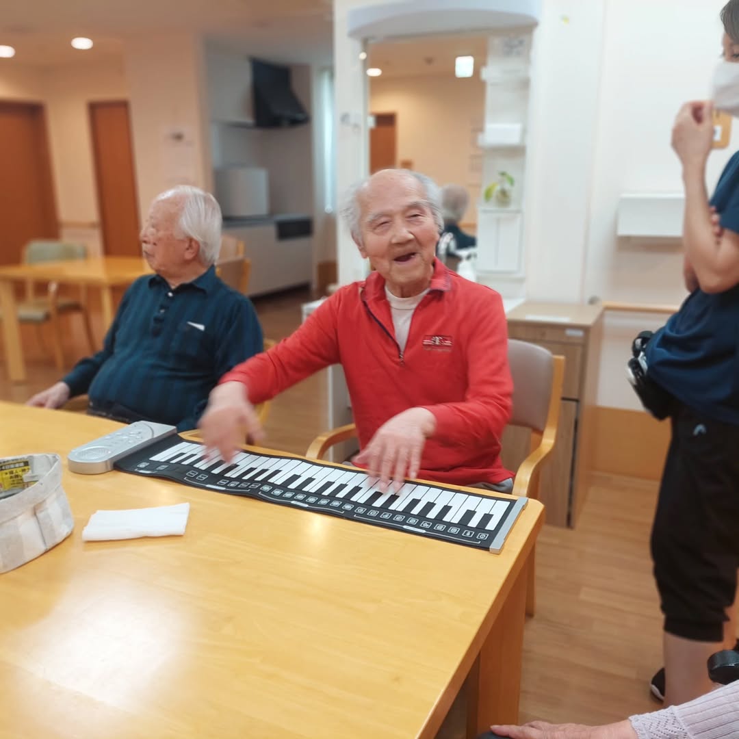 南こしがや翔裕館 ❤住宅型有料老人ホーム❤ 本日の午後アクティビティ♪ 職員さんがロールアップピアノを持ってきてくれました! 『バンドを組もう♪』と話まで大盛り上がりでした!