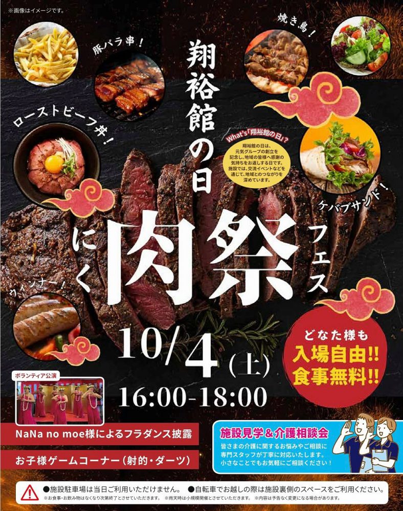 【イベント告知】10/4(土)16時〜18時 秋祭り 「肉フェス」を開催します!