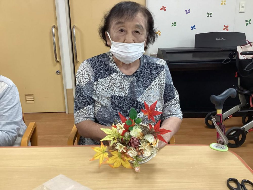 額に紙粘土を置き、思い思いに造花をさしていきました それぞれ上手な仕上がりでした♪
