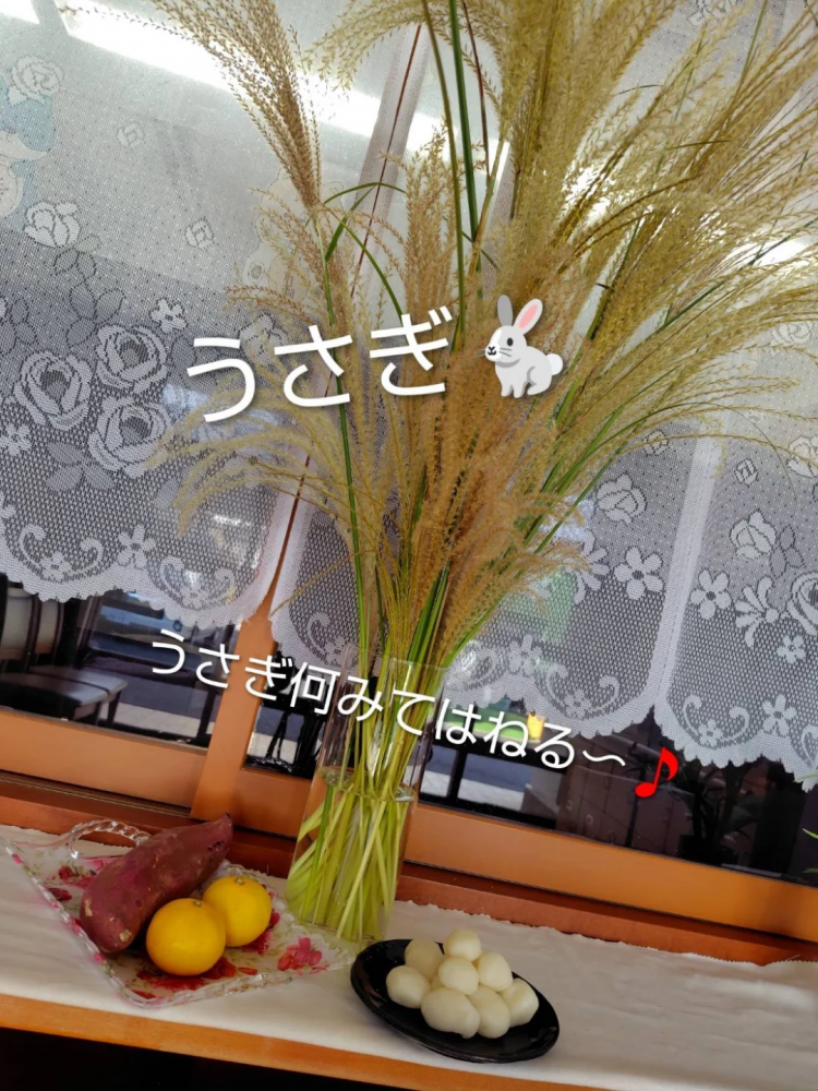 今日は、十五夜!お団子を作ってかざりました! 夜、きれいなお月様がみれるといいですね〜。