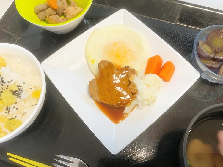 特別メニューでうざぎの形のハンバーグ。