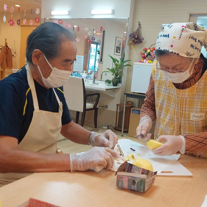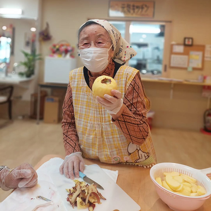皆様綺麗にカットしてくれ美味しいりんご煮ができました