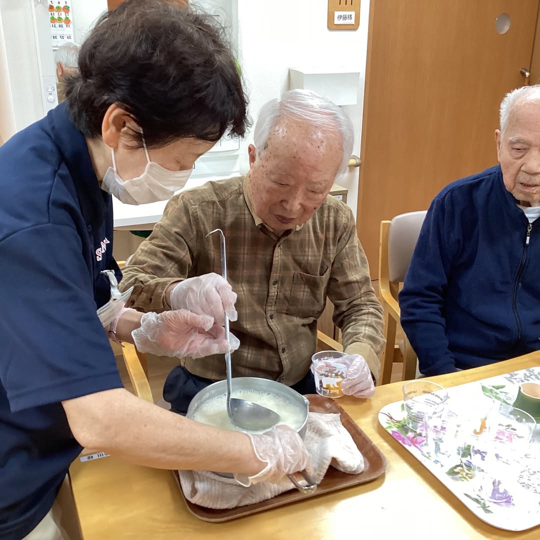 南こしがや翔裕館 ❤住宅型有料老人ホーム❤ 本日のおやつ作りはマチコの牛乳寒天作り入居者の皆さんに協力していただきました!皆さんで昼食の時間帯に美味しく召し上がりましょう♪