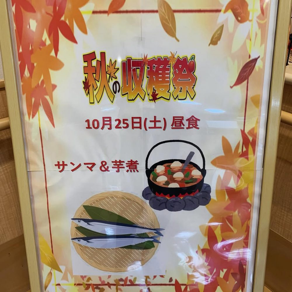 浦和さくら翔裕館 秋って食欲が出ますよね 新米、秋刀魚などなど 美味しいものがたくさん あるから仕方ないですね ってことで‥‥ 秋の収穫祭のお知らせ〜 10/25のランチは 秋刀魚、芋煮、新米おにぎりですよ 楽しみですね♪