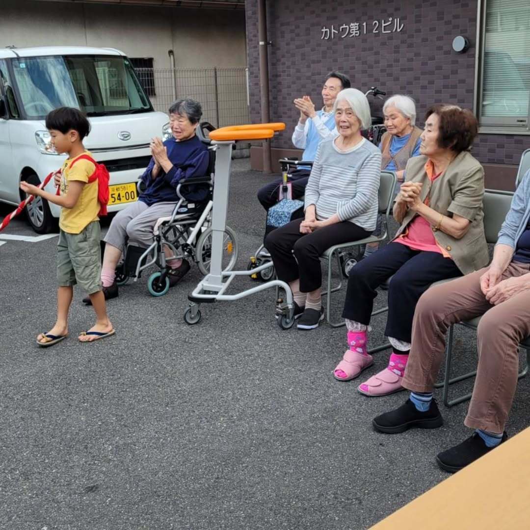 本日は地域のお祭り「岩屋神社秋祭」の日でした 神幸祭ということでなぎつじ翔裕館の前も神輿巡幸されました! 利用者様も外に出て楽しまれ、大変賑やかな一日でした