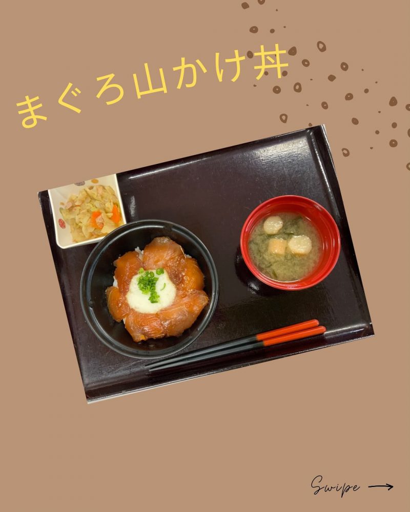 ななさと翔裕館 昼食 秋メニュー 本日はまぐろ山かけ丼です