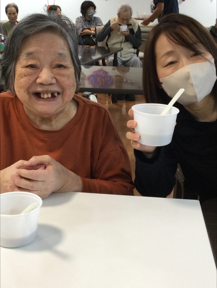 ご家族様や一般の方と太鼓の演奏を聴き、お汁粉を提供させて頂きました。