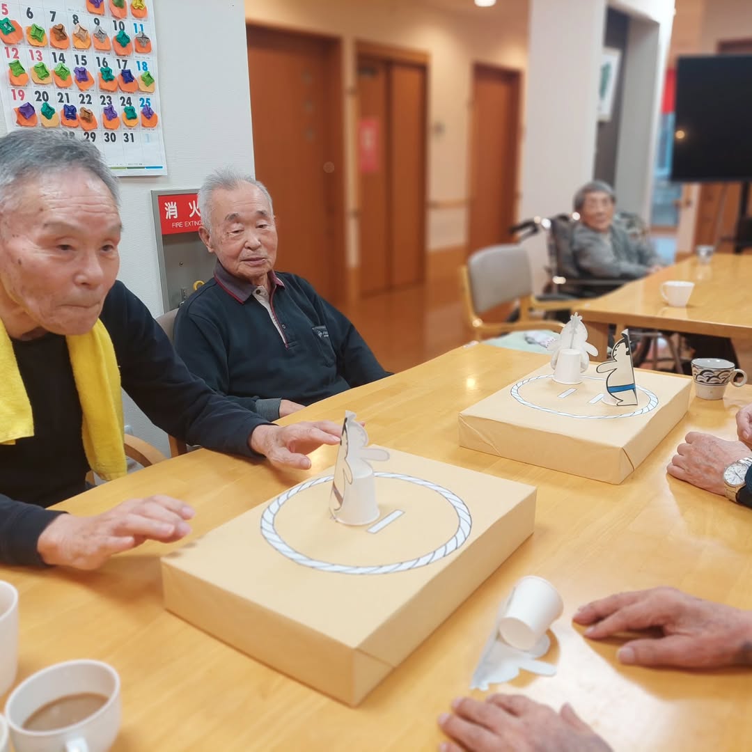 南こしがや翔裕館 ❤住宅型有料老人ホーム❤ 本日の午後は紙相撲♪ これまた職員さんが作ってくれました!! 静かに熱い戦いを繰り広げていました~(*^^*)