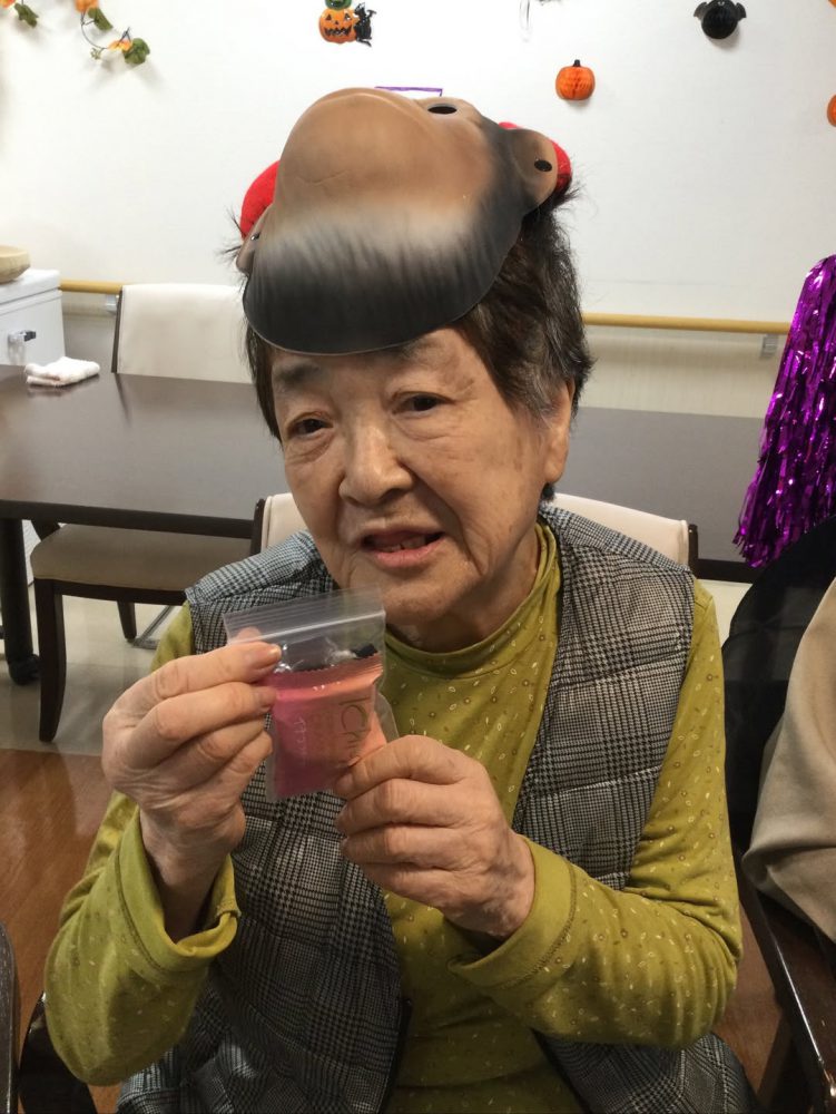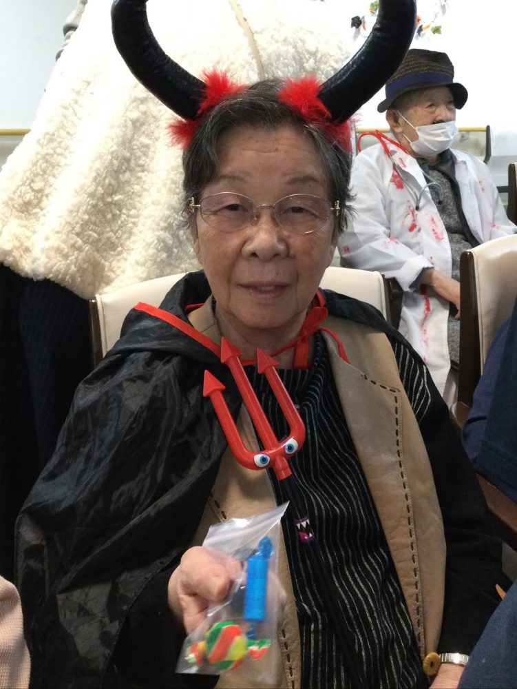 今日は、ハロウィンの仮装をおこないました。 ご自身で衣装を選ぶ方もいて、写真撮影後には『写真みせてー』と おっしゃられていました。 これからも楽しく過ごして頂けるようにしていきたいと思います。