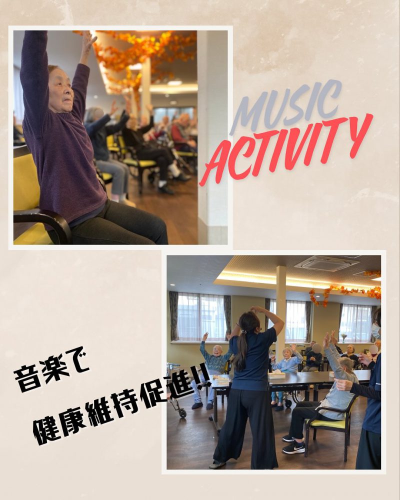 先日の音楽アクティビティのご様子です! 第一興商の方々が来てくださり、DAMを使用した様々なアクティビティを紹介くださいました 歌って踊って脳トレして…楽しく健康維持ができましたよ〜