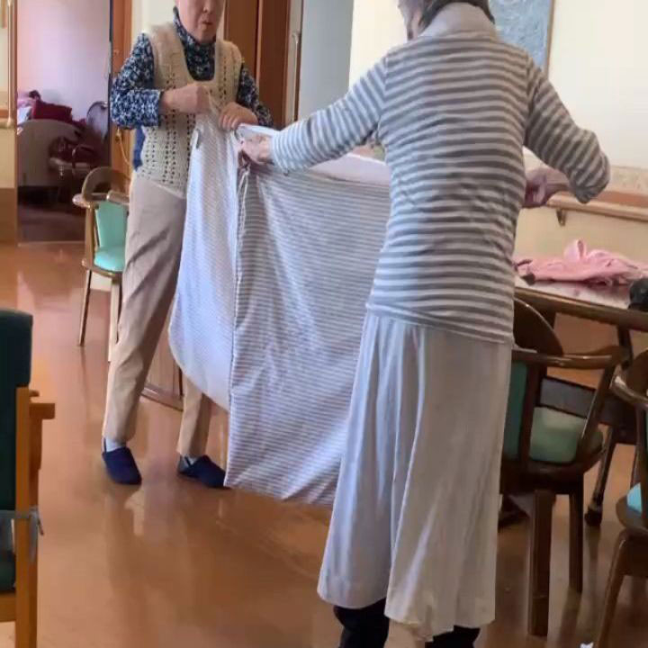 一緒に大きな洗濯物をたたんだり! いつもの穏やかな日々! 思わずニッコリ(^_^)