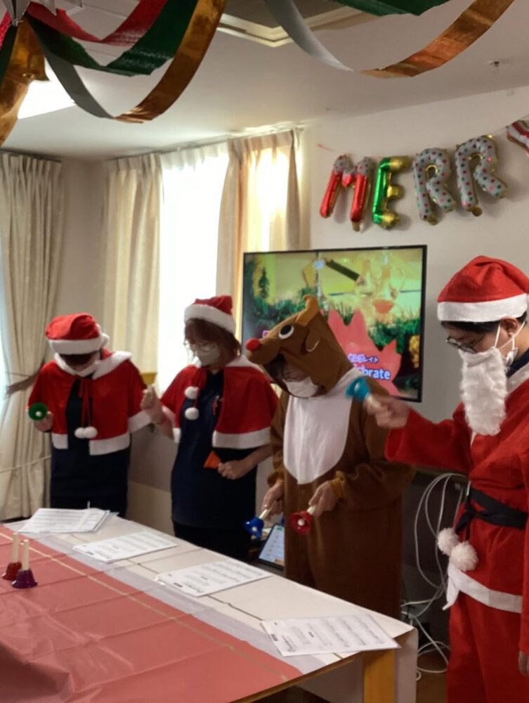 クリスマス会 大盛り上がりでした^_^ 食事も手作り!ボリュームありでサクサクのエビフライ 演奏会も盛り上がりました