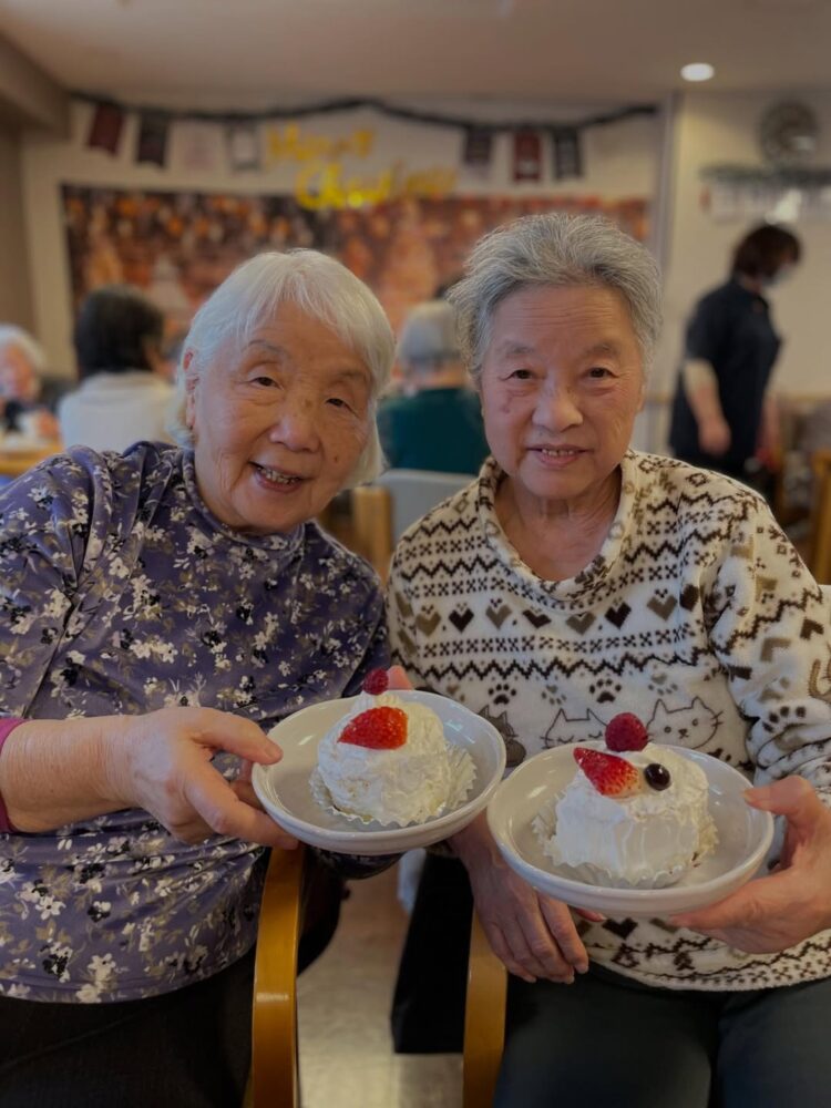 午後は手作りクリスマスケーキ作り 「おいしいね」「きれいにできたね」と 笑顔いっぱいの時間になりました