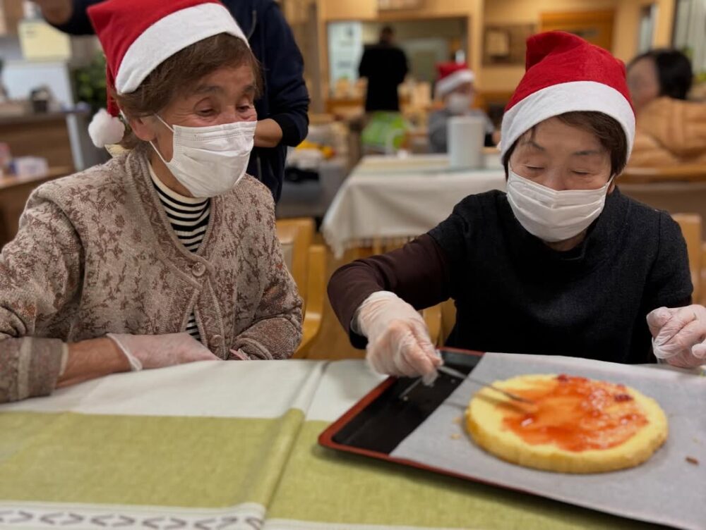 特別なクリスマスランチからスタート そのあとは、みんなでケーキ作り 飾りつけをしながら自然と笑顔がこぼれ 出来上がったケーキは格別の美味しさでした