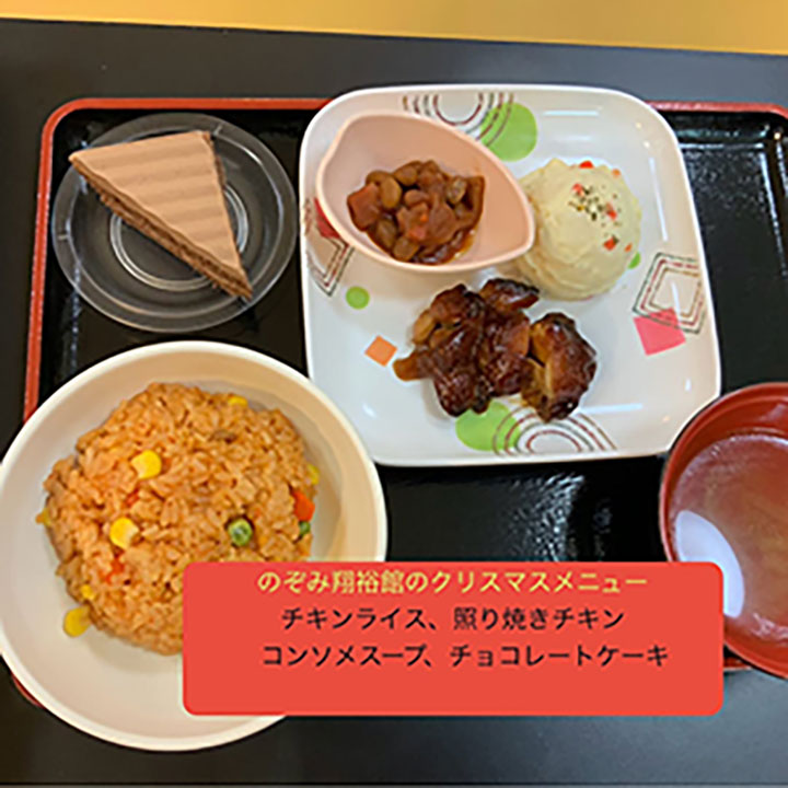 今日はみんなでクリスマスの行事食をいただきました。