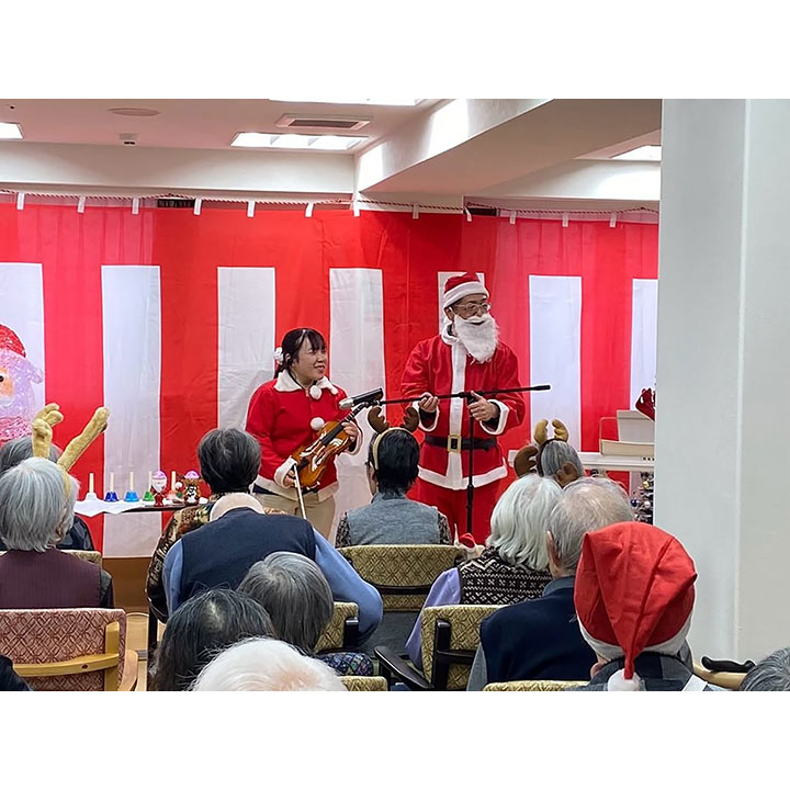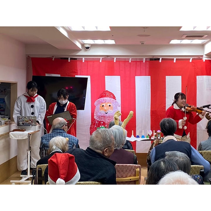 クリスマス会で、職員による バイオリン・ベル・ピアノの演奏会を行いました