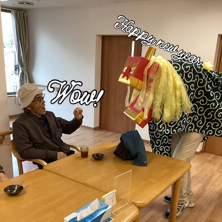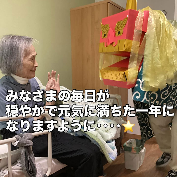 施設に獅子舞が遊びに来てくれました〜