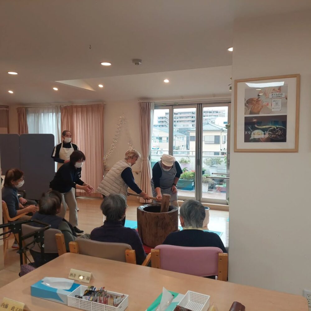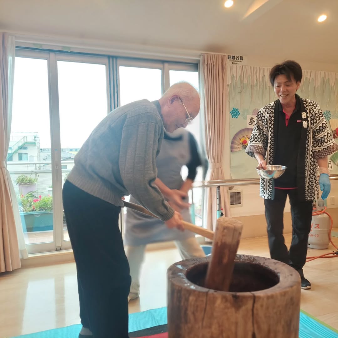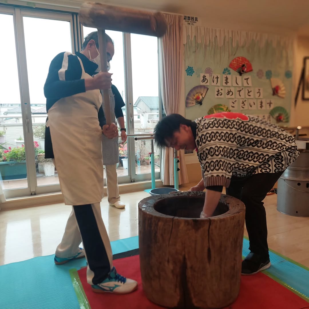 南こしがや翔裕館 ❤住宅型有料老人ホーム❤ デイサービス 新春お餅つき大会♪ 本格的なお餅つきを体験していただきましたー!