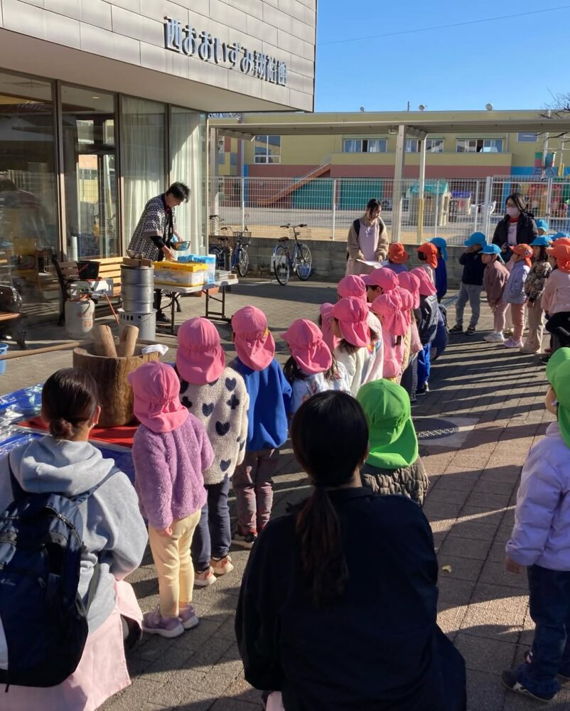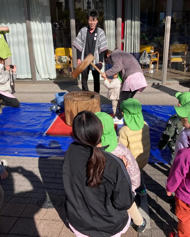 西おおいずみ翔裕館では、1月6日に今年初イベントのお餅つき大会を開催しました みらいく西大泉園の園児さんも一生懸命に頑張ってくれました! 利用者様,入居者者様も昔はよくお餅をついたのよ、と手慣れた様子でついてくださいました。