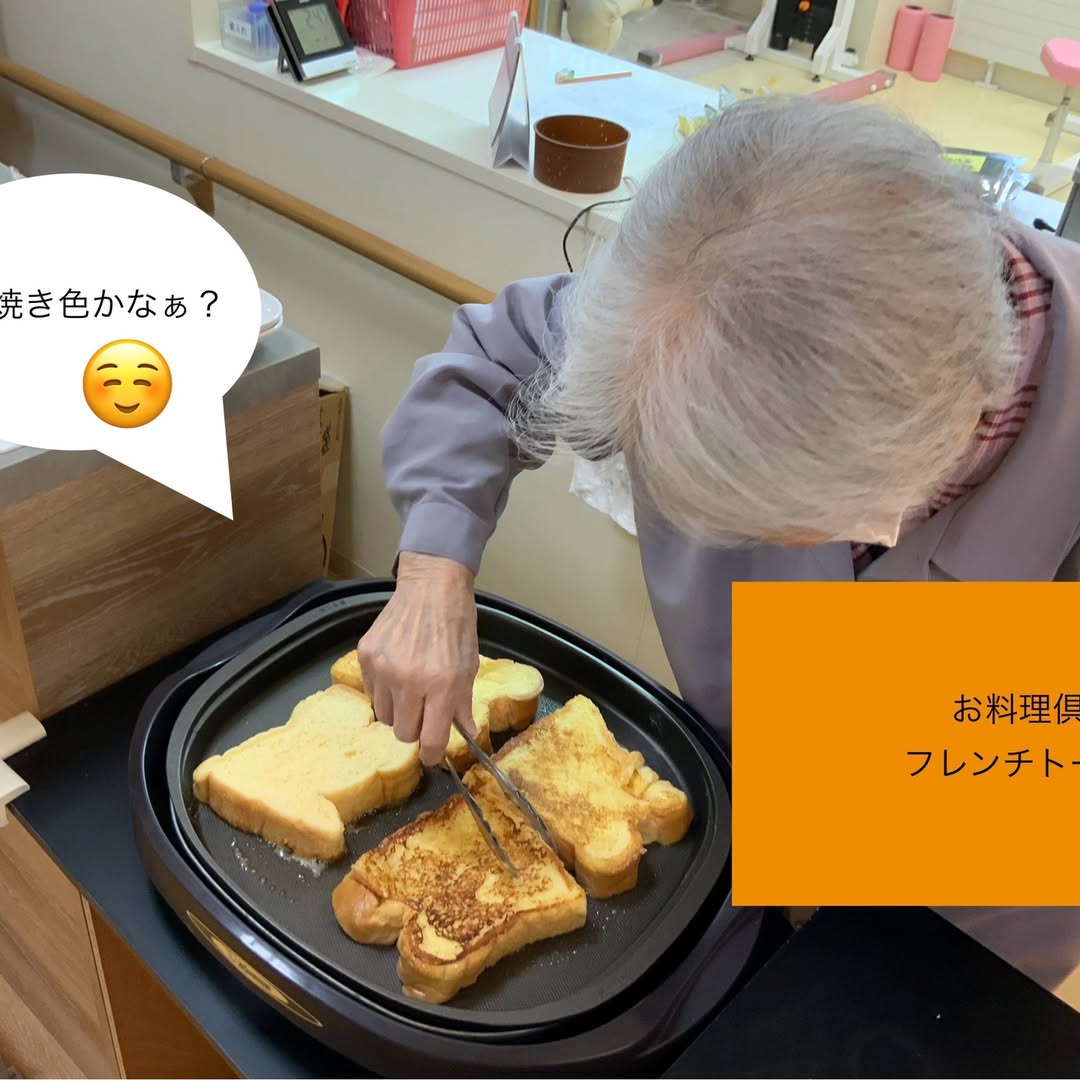 デイサービスで今日はみんなと一緒にフレンチトースト作り。