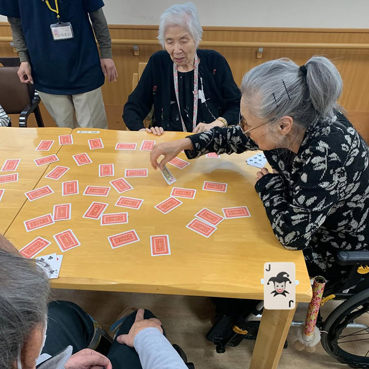 トランプでは職員もご一緒させていただきながら、実施しました!みなさんの笑顔が溢れていて職員とても嬉しかったです!