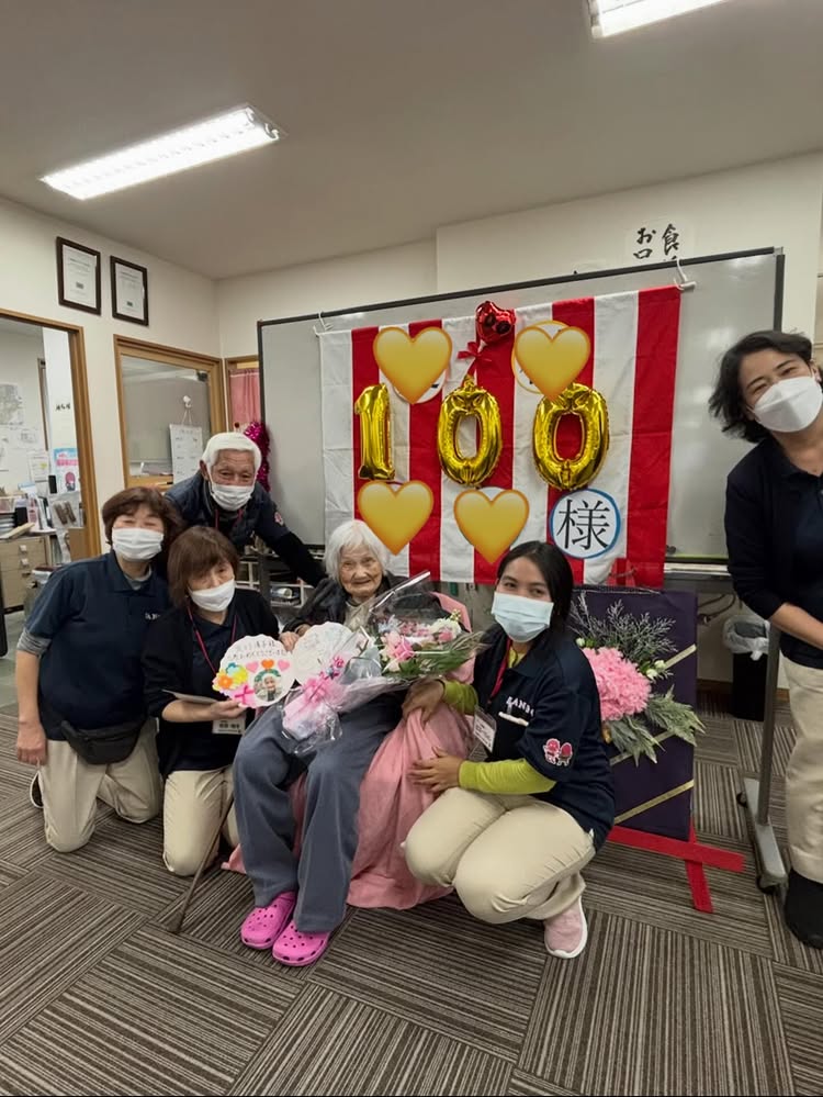 今月、100歳になられた方のお誕生日会を