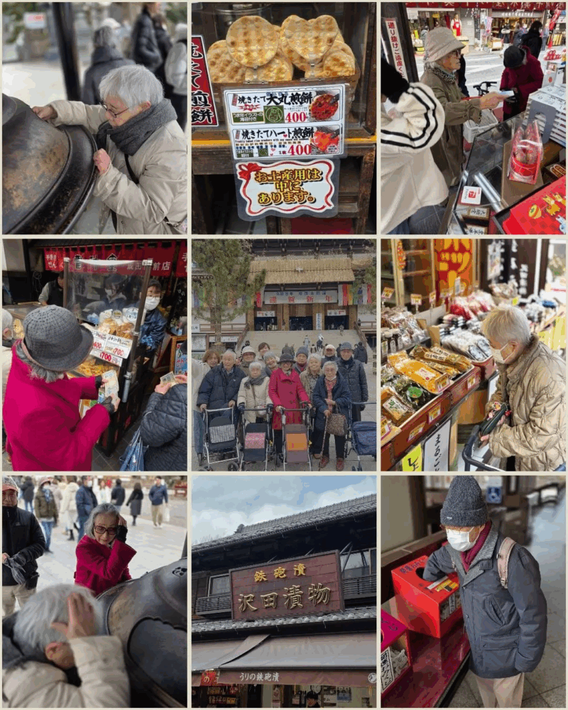 今日から2月ですね!先月になりますがデイサービスでは日帰り成田山ツアーに行って参りました!来所されてから水分補給等をしていざ出発