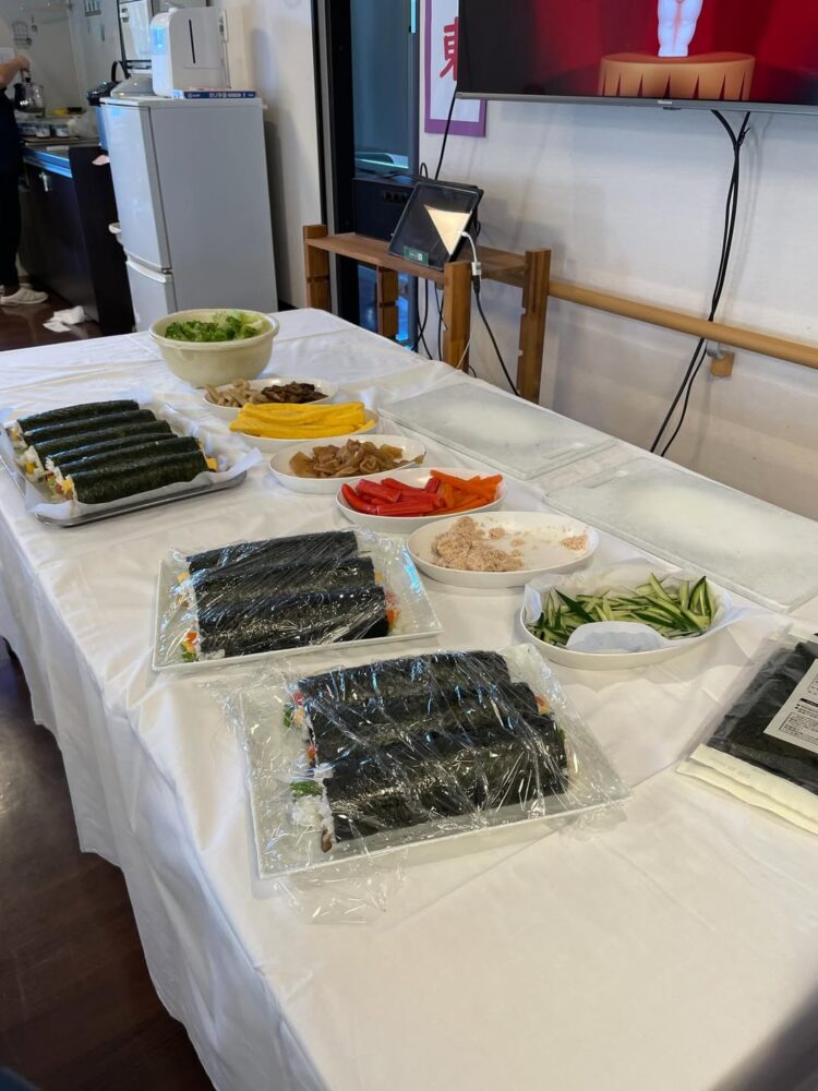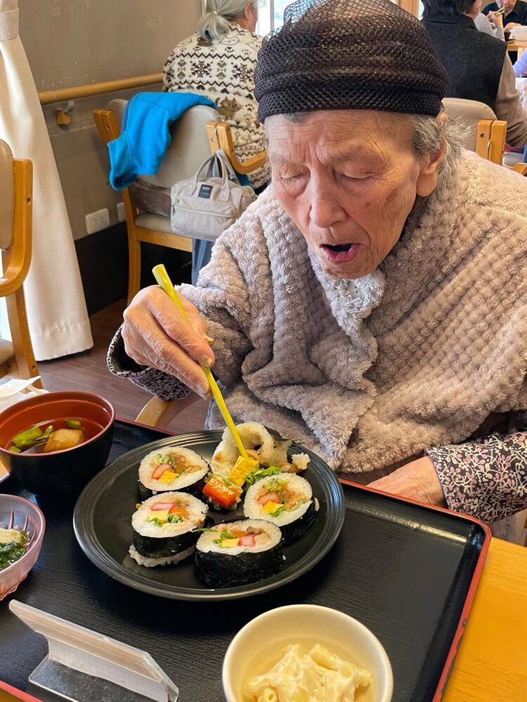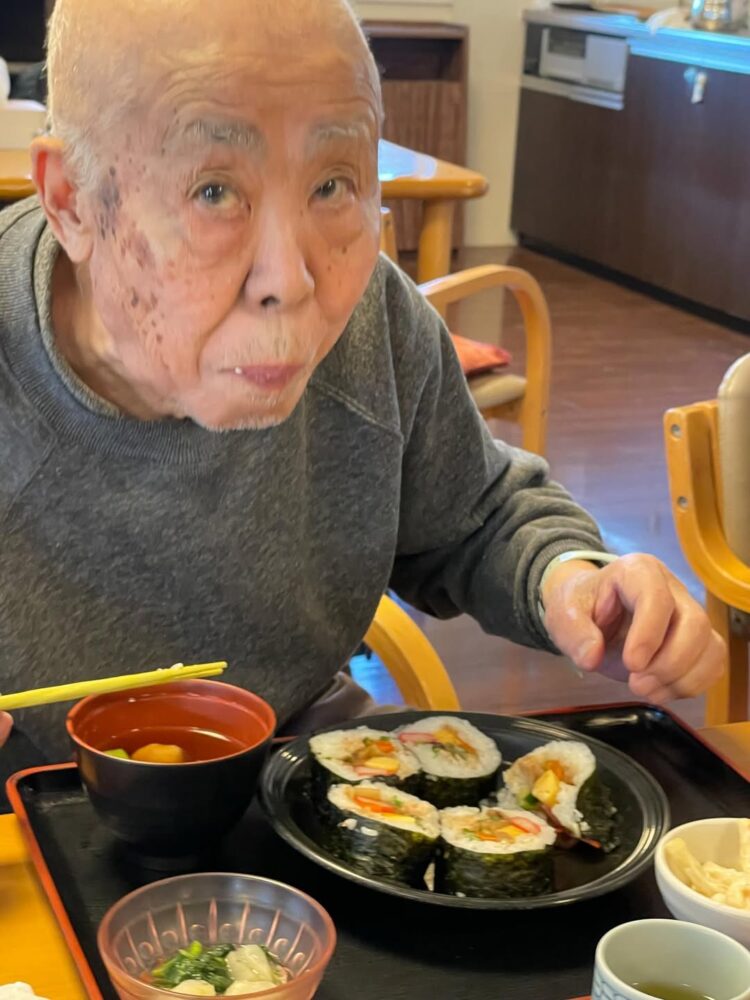 皆さんで恵方巻きを作り、