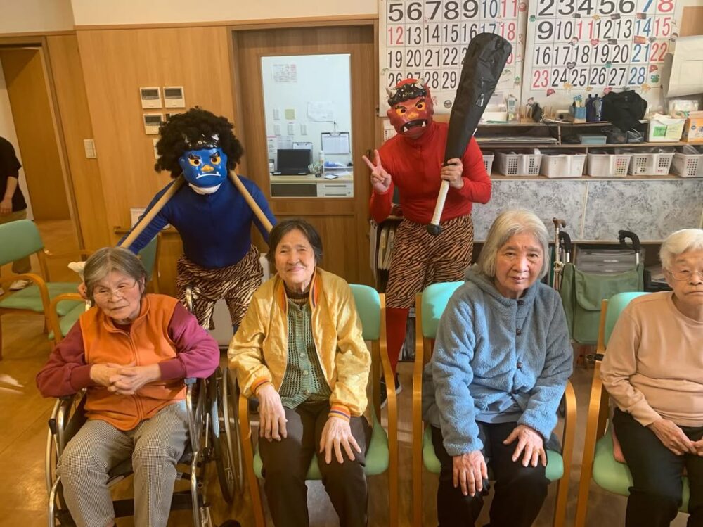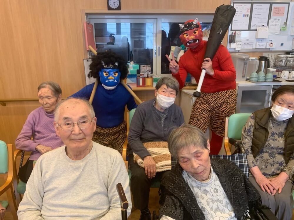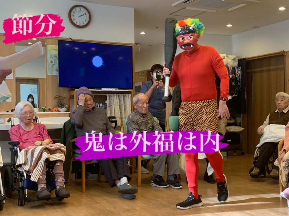 2026.2.3 わこう翔裕館の節分 鬼は外! 福は内! 楽しい節分 赤鬼青鬼に豆ではなく新聞紙のボールを〜笑 お客様も楽しく鬼に向けて投げる〜! たくさん笑い 盛り上がった節分でした! 赤鬼、青鬼さん ありがとう