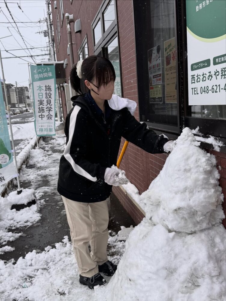 雪が降りました〜 恒例の雪かき&雪だるま作り ご利用者様も喜んでくださり、 地域の皆様にもよろこんでいただきました