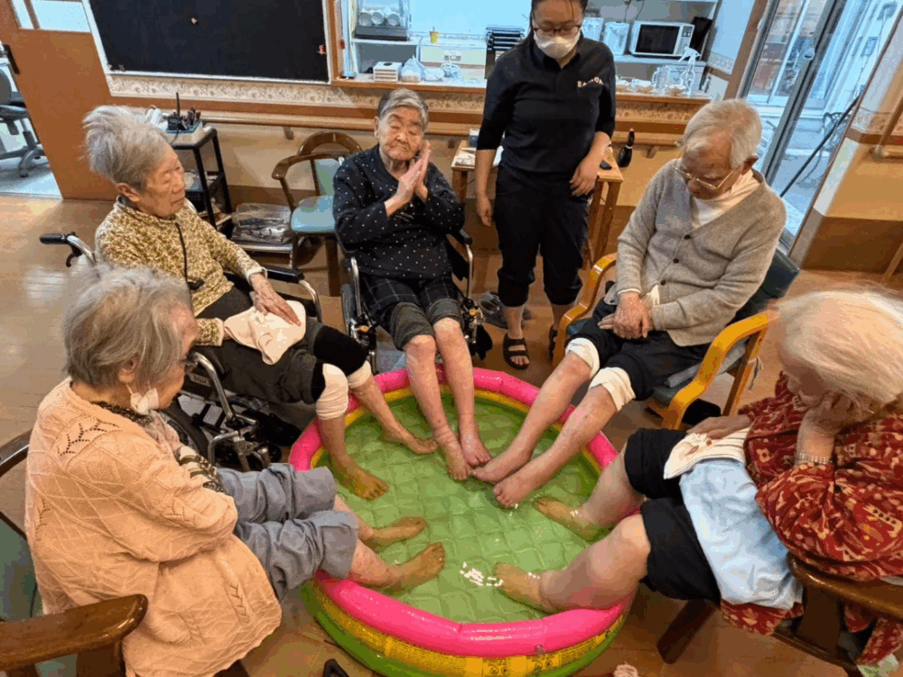 ふなばし翔裕館グループホームです! 雪が降る寒い日は、皆で足湯 温まりますね!!