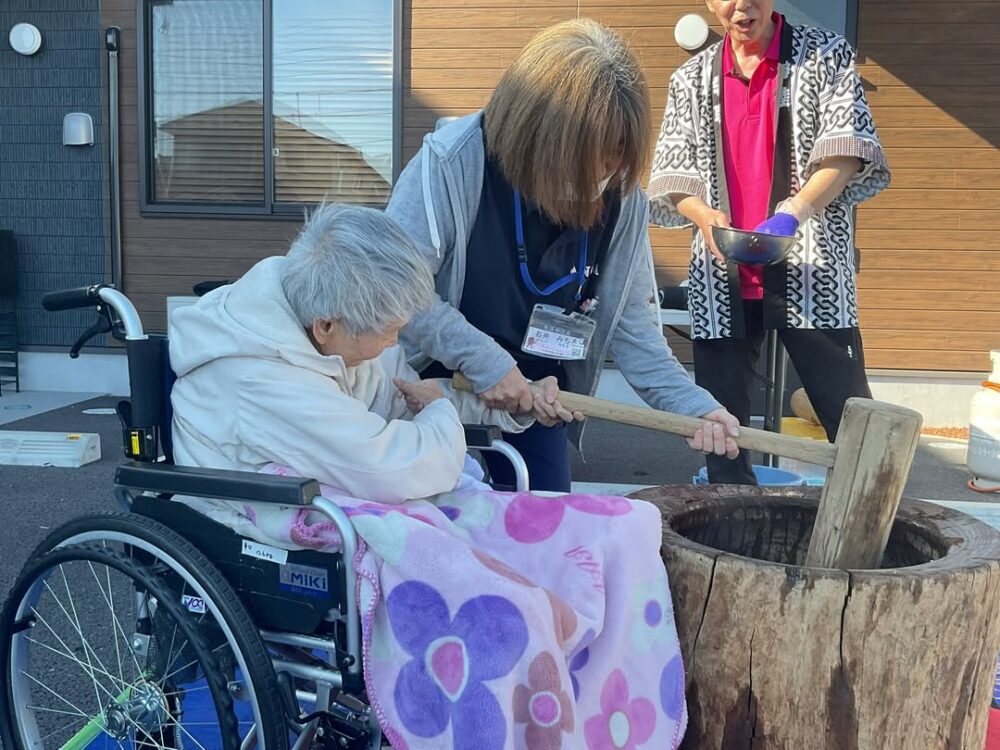 お正月にちなんで、毎年恒例のお餅つきを開催いたしました!