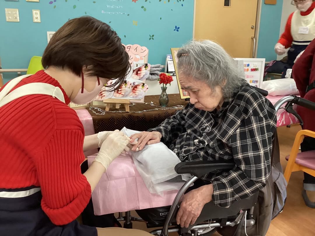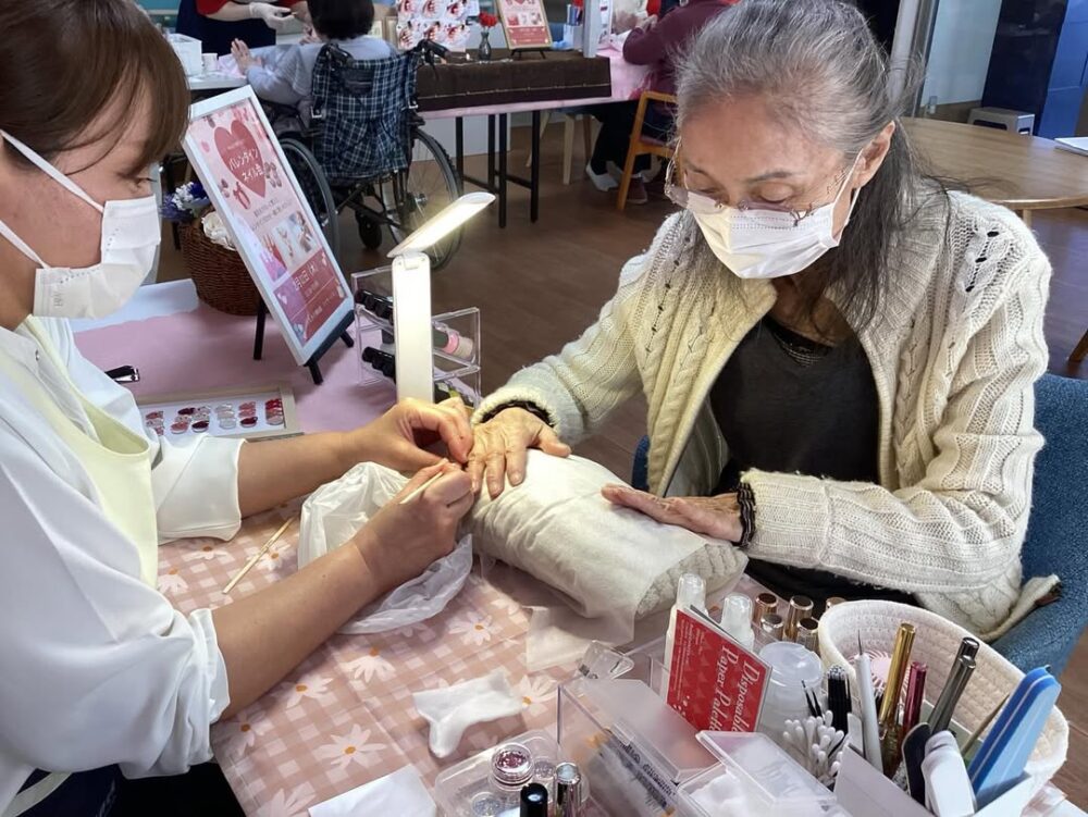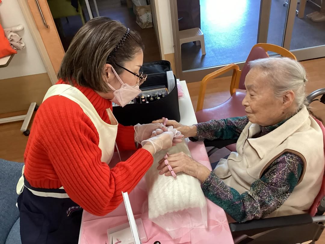 ボランティアの方が見え、ネイルをして下さいました それぞれ好みの色を選んでました ネイルをして、皆様笑顔になりました