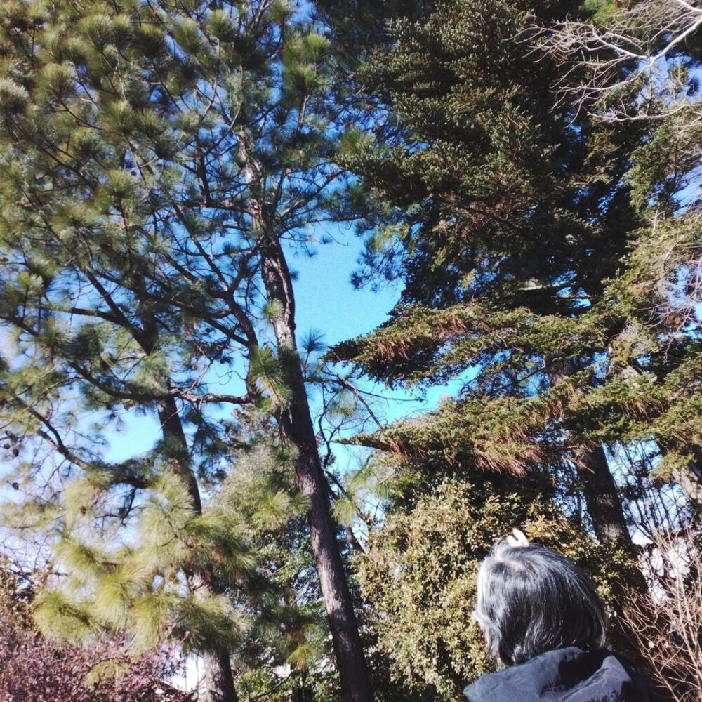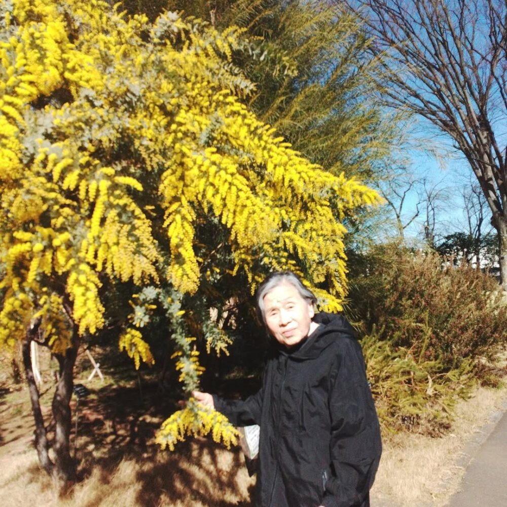 お天気がいいのでお散歩にお出かけしました。ミモザがとても綺麗に咲いていました。ご本人様も「見上げてあら、すごいわね」とおっしゃられていました。