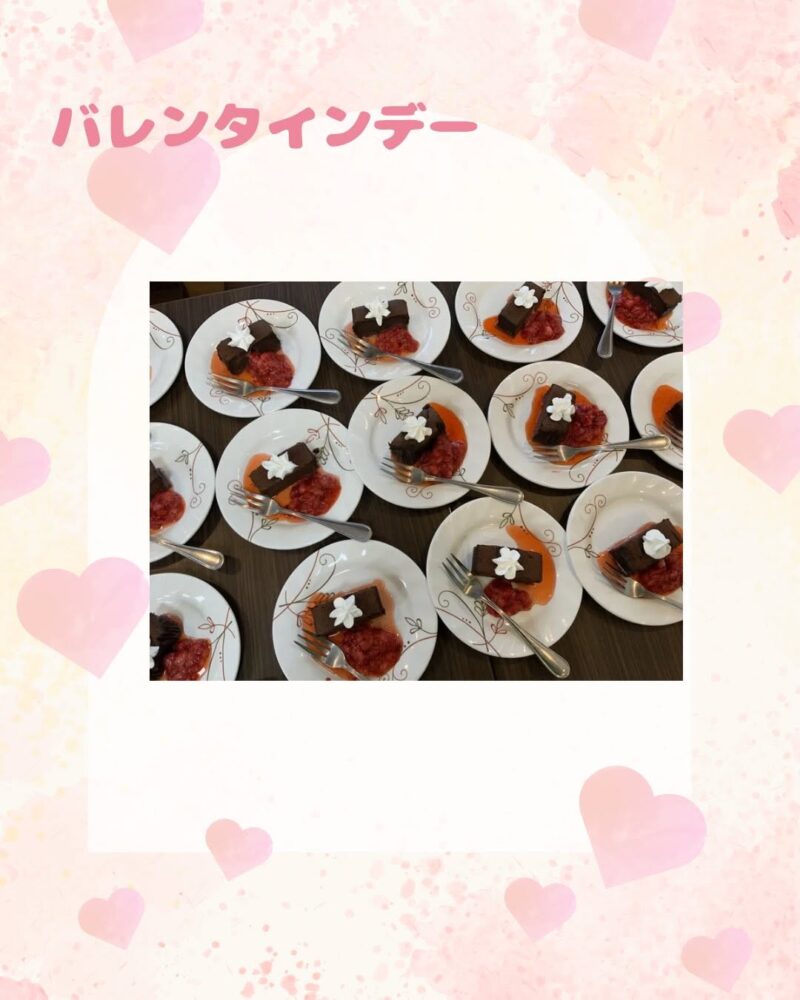 バレンタインデーのチョコレート配布の際はたくさんの方に来ていただきありがとうございました 施設内でもデザートを作り皆さんに楽しんでいただきました