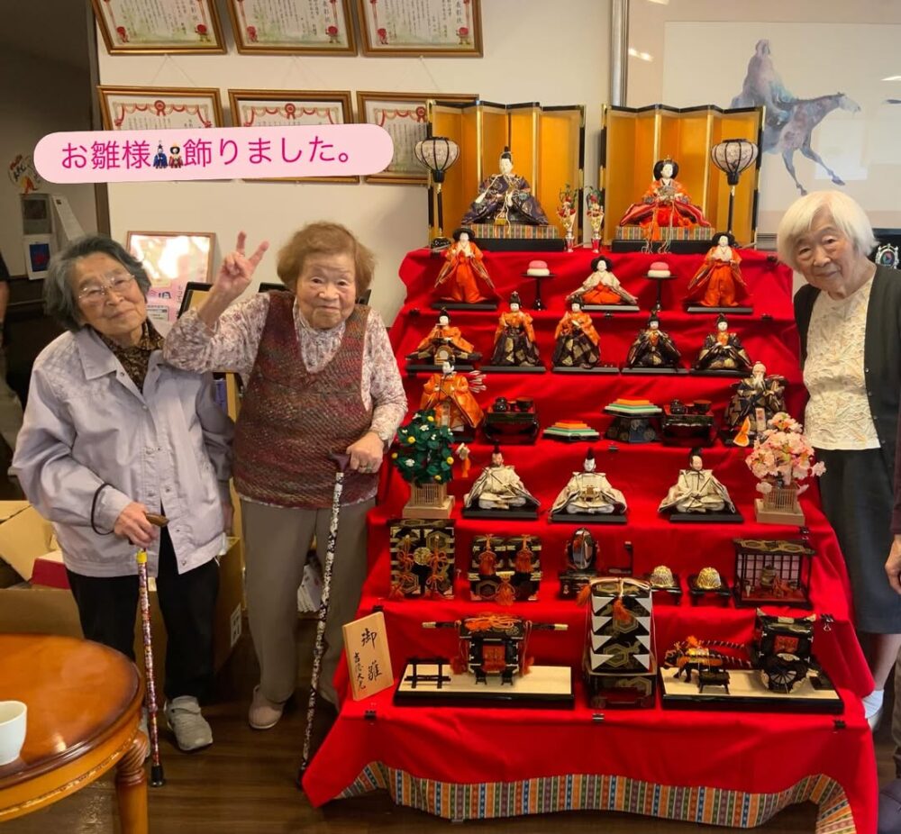 ところざわ翔裕館I号館です。 ご利用者様にお手伝いいただき、お雛様を飾る事が出来ました 飾り付けもさくら仕様に変更いたしました。