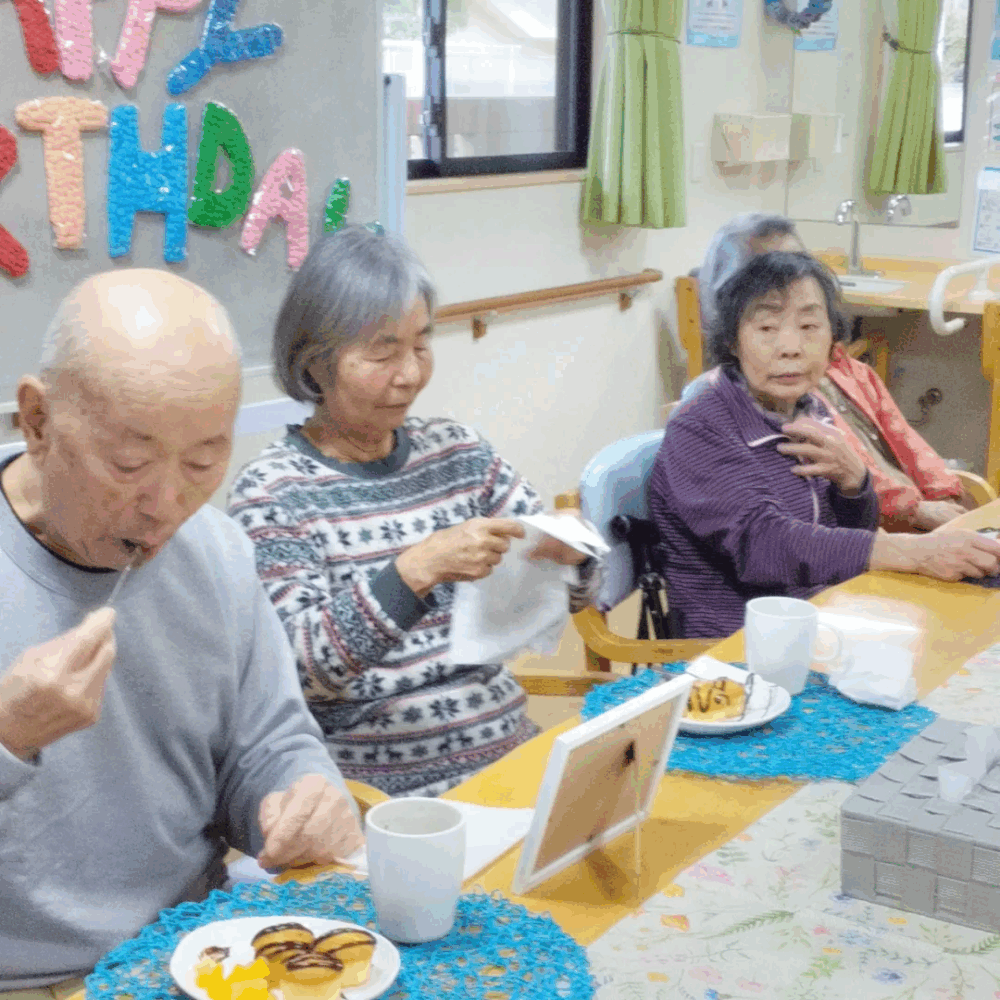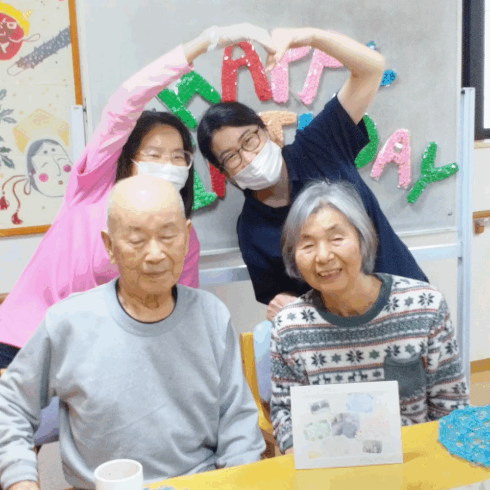 今日は利用者様の誕生日! おめでとうございます とても笑顔の素敵な方 ご夫婦とても仲良し 笑顔溢れる素敵な一年になりますように