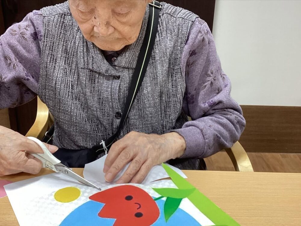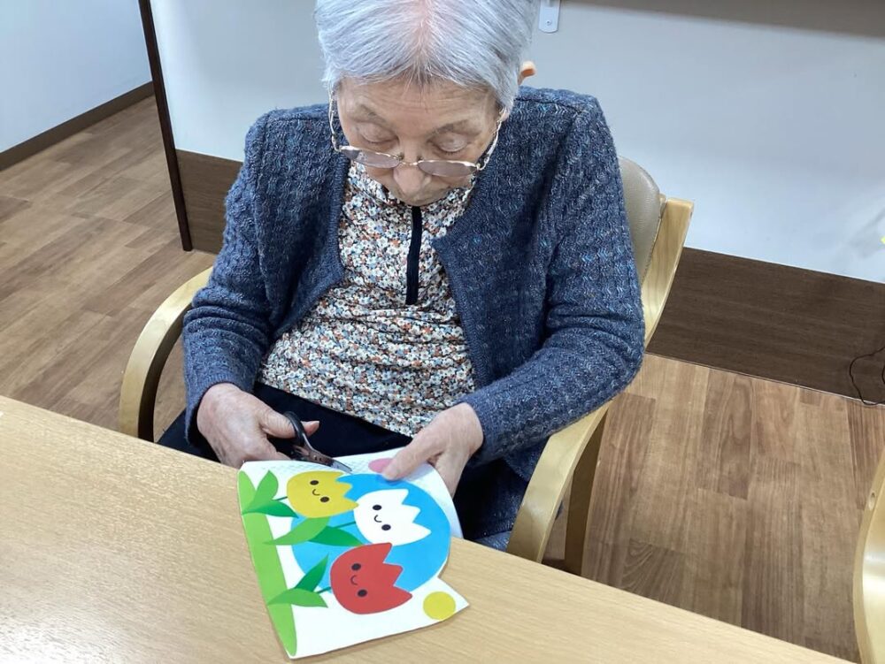 4月になる前に お部屋の飾りも春らしくするため みなさんに飾りを切って頂きました